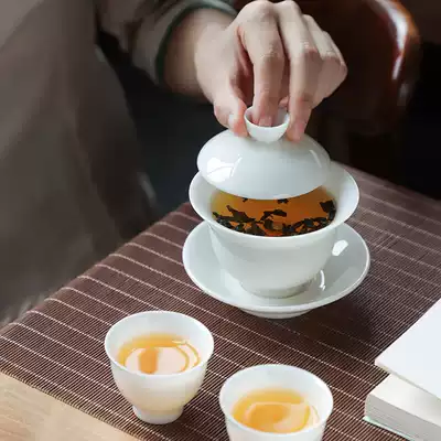 Dehua white porcelain sheep fat jade porcelain tea set set three-year-old thin tire cover bowl Teacup high-end single non-hot tea bowl
