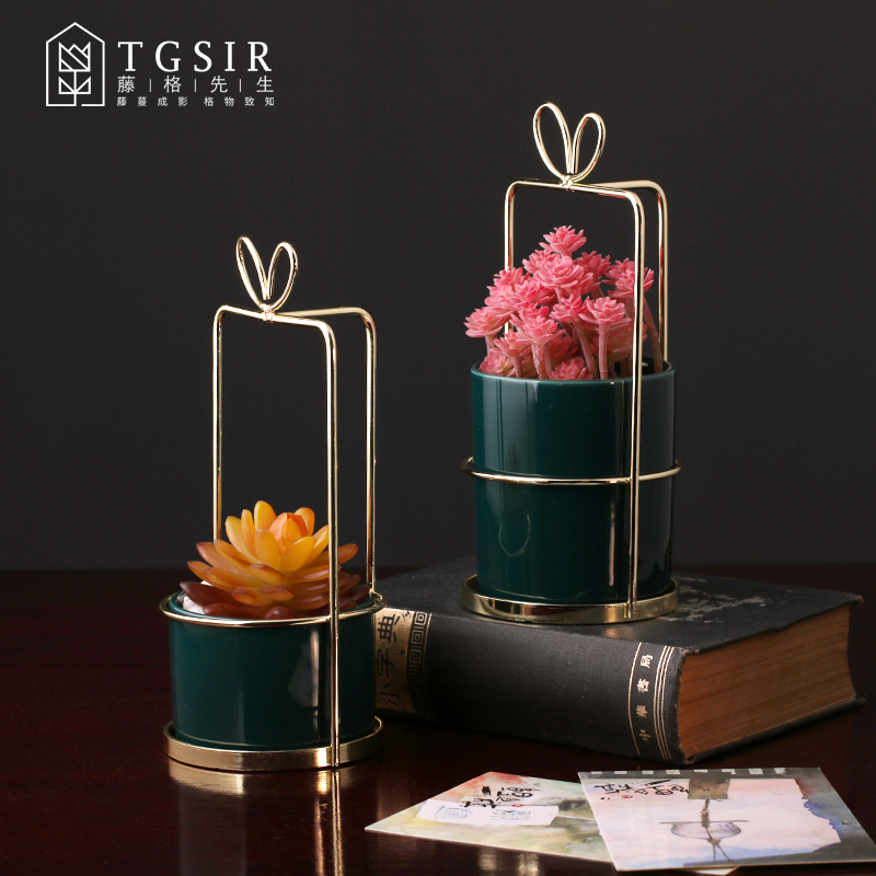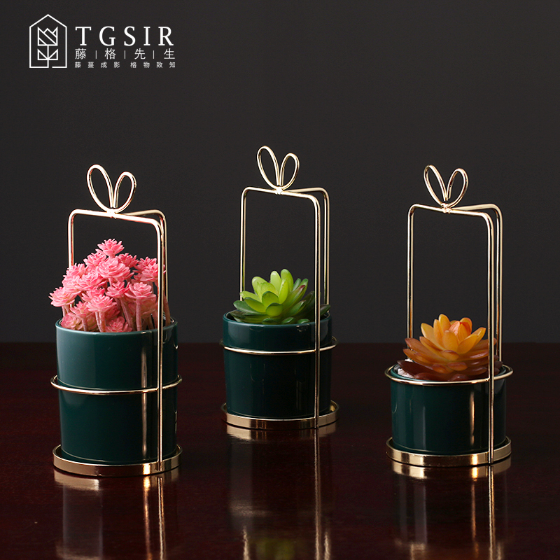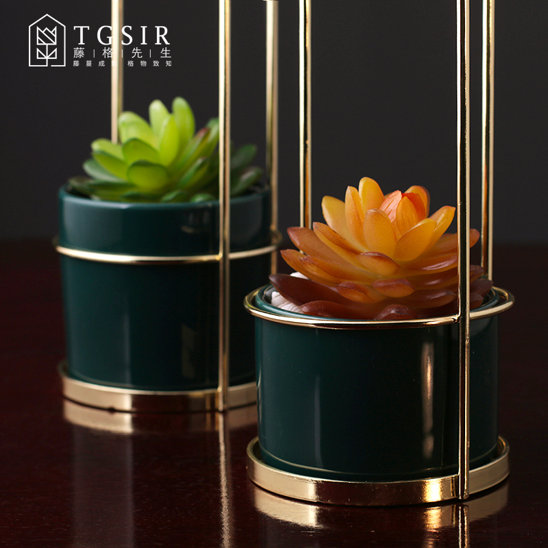Modern simple creative ceramic small vase decoration Living room desktop simulation meaty green plant potted plant mini micro landscape