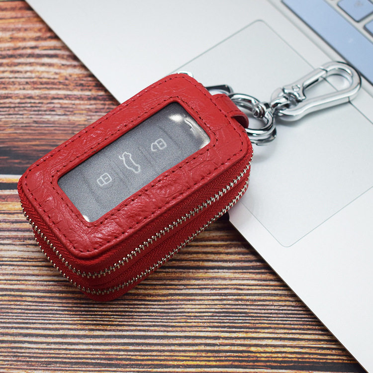 Real Key Pack Men's Head Buffalo Large Capacity Double Waist Car General Remote Control Zip Key Pack Female