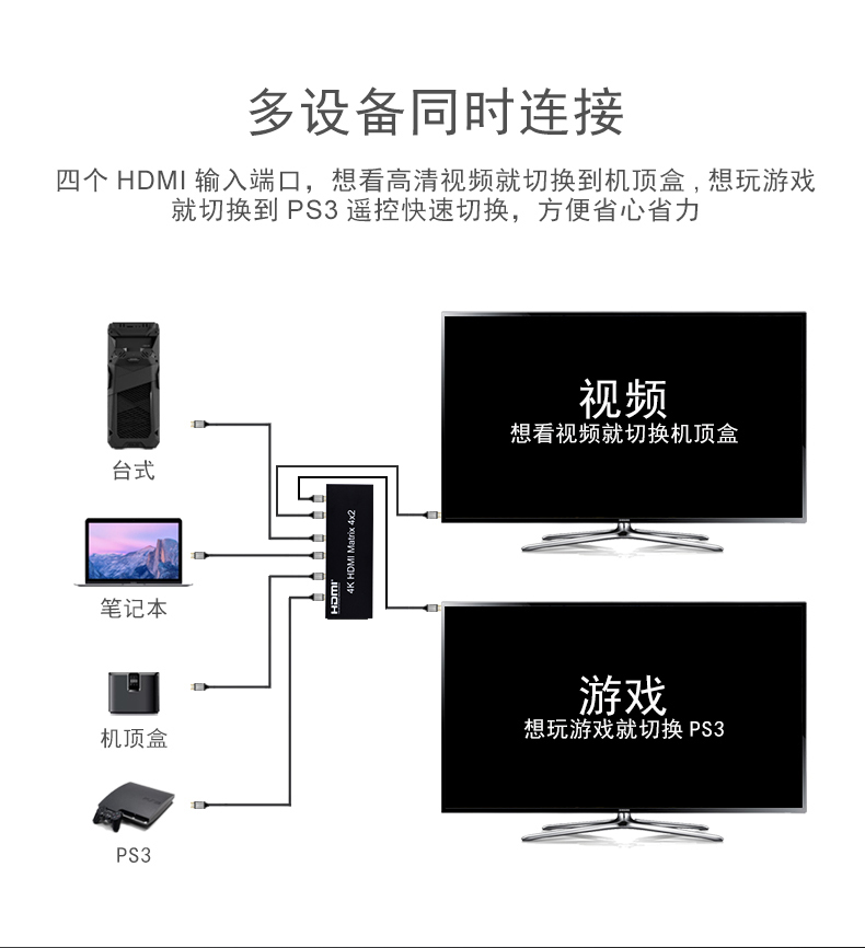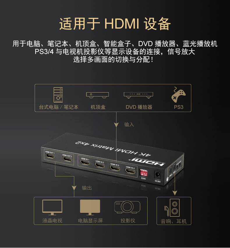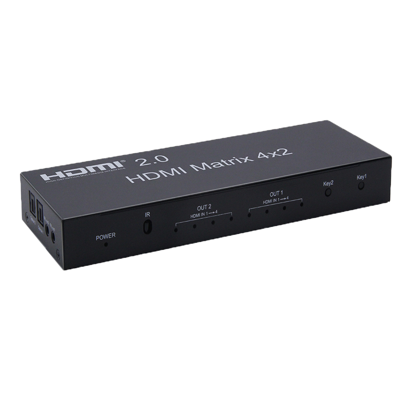 HDMI Matrix Splitter 4-in-2-Out Switcher 2.0 HD 4k@60hz Four-in-Two-Out EDID Audio Separation