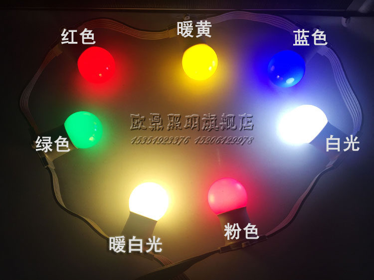 E27 screw port 1W watt colorful LED outdoor interior decoration red orange yellow green white blue purple energy-saving color light bulb