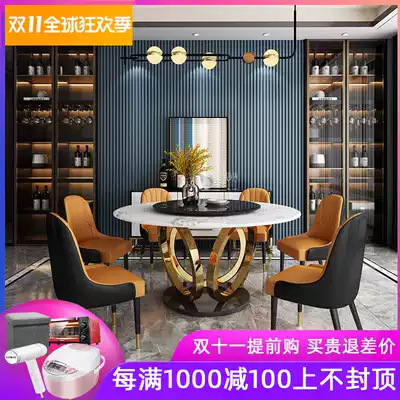 Light luxury marble dining table Household round dining table Multi-function dining table and chair combination Nordic simple round table with turntable