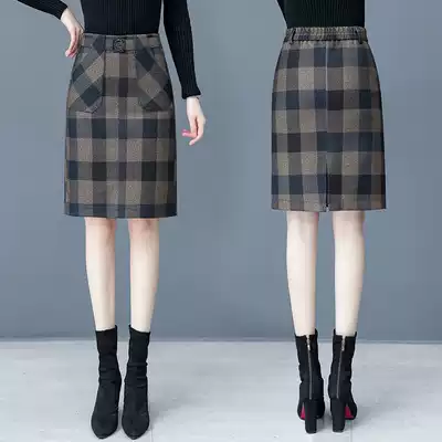 Hairy plaid skirt women 2020 Spring and Autumn New High waist one step skirt fashion temperament A- line dress hip skirt