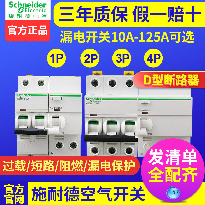100A Schneider air switch ic65n circuit breaker 80A 2P63 An 4P 3P with leakage protector 125A