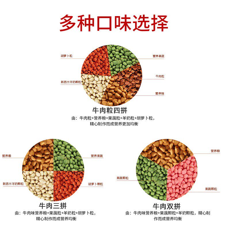 Universal 10kg pack (basic pure grain) beef fruit and vegetable double pack 10kg (add fruits and vegetables) beef goat milk fruit and vegetable 3 pack 10kg pack (nutrition average beef grain goat milk fruit and vegetable 4 pack 10kg pack (nutrition