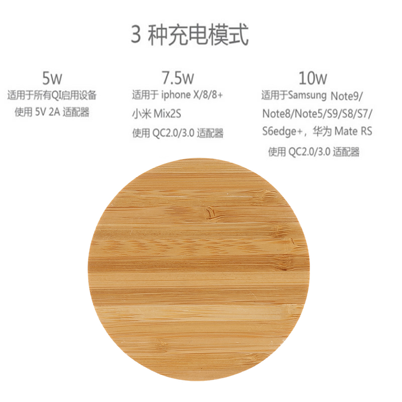 10W natural bamboo wooden wireless charger Qi fast charging supports Android Samsung Apple 11 iPhonexs