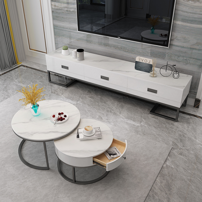 Nordic TV Cabinet Tea Table Combo Modern Minima Small Household Type Light Lavish Rock Board Creative White Simple 1 5 m
