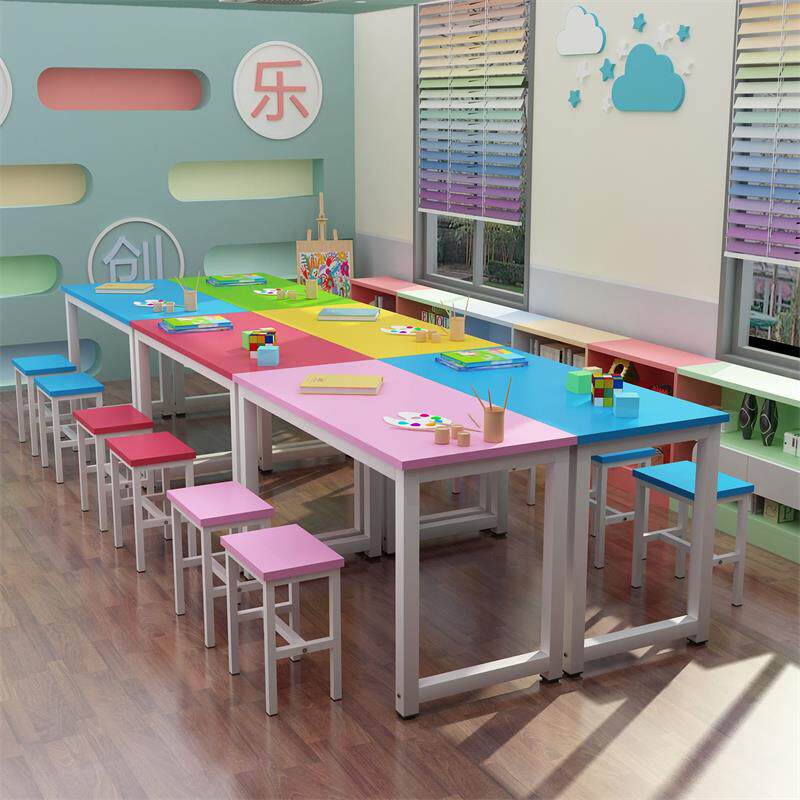 Primary school kindergarten color desks and chairs children's studio table art hand painting table cram tutoring training table