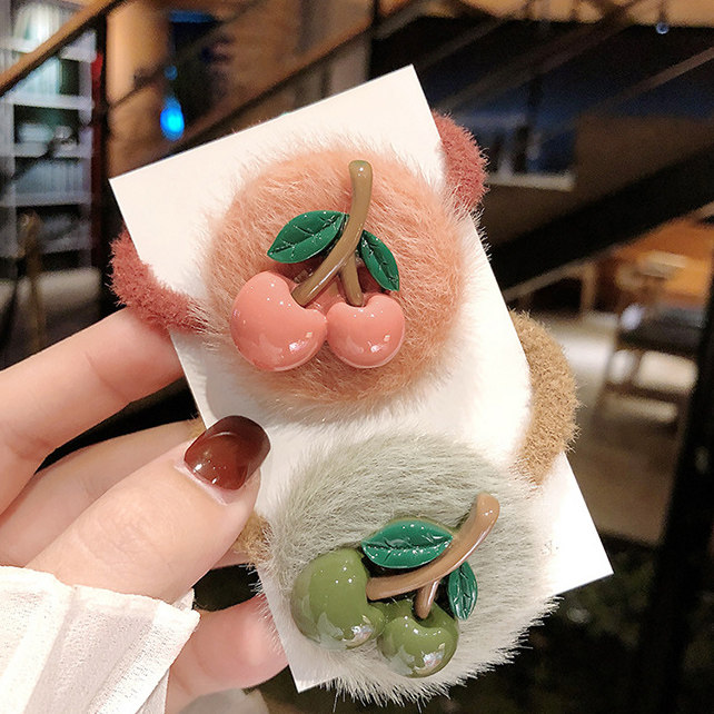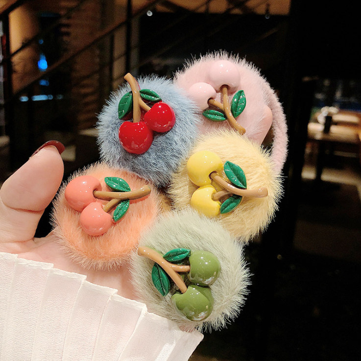 Plush hair ring-pink cherry plush hair ring-red cherry plush hair ring-yellow cherry plush hair ring-orange cherry plush hair ring-green cherry
