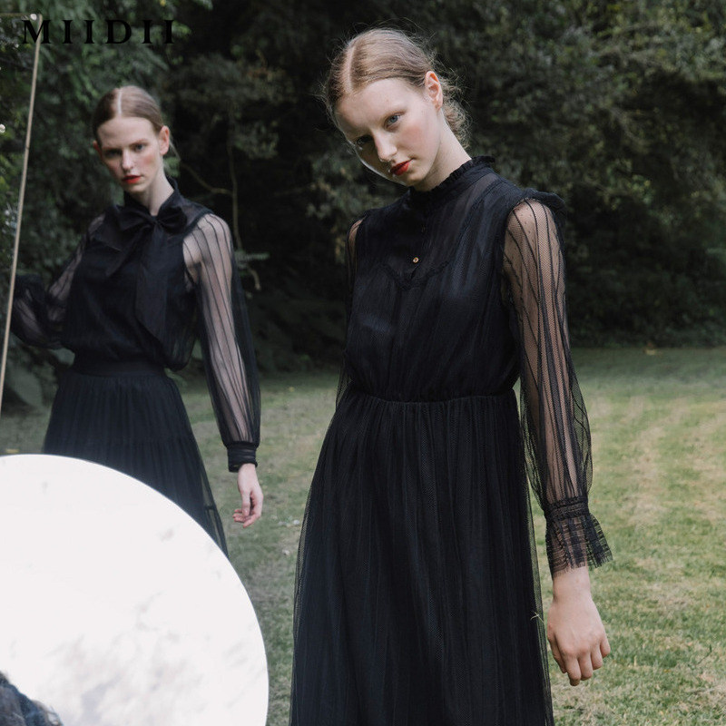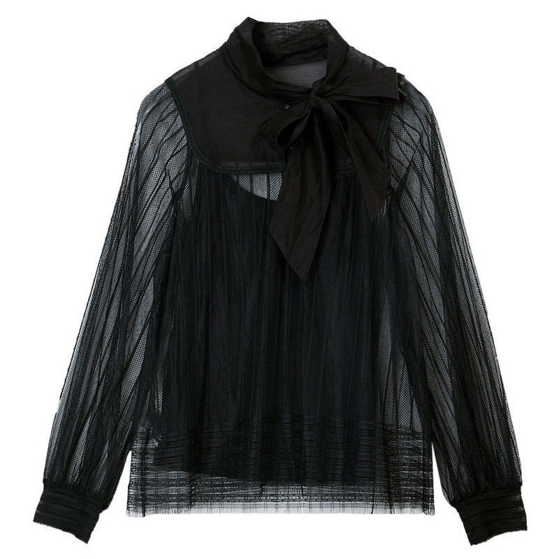 Riddle Early Autumn Retro Elegant Splicing Lace Lotus Leaf Lace Blouse Shirt Woman 201MS0143
