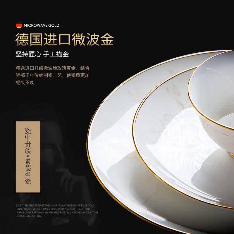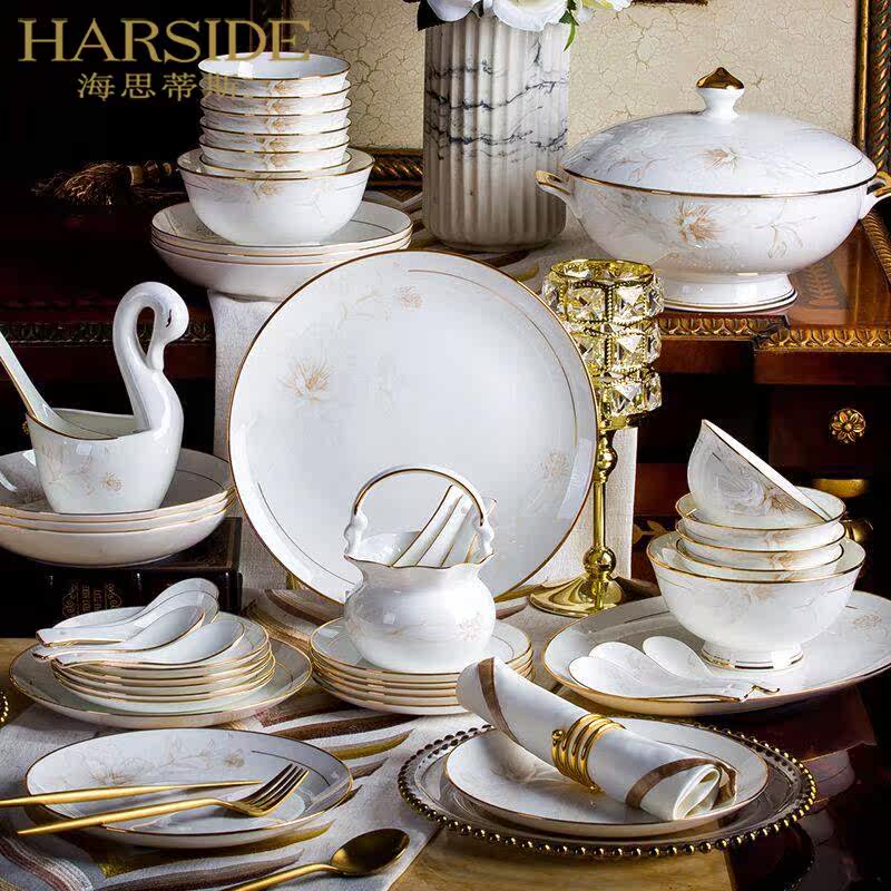HARSIDE European-style bowls and dishes tableware set household high-grade bone china simple bowls and dishes porcelain bowl combination