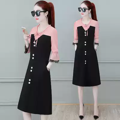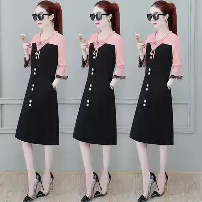 New dress women 2021 pop spring temperament long sleeve spring fashion skirt Taiwan stitching waist slim