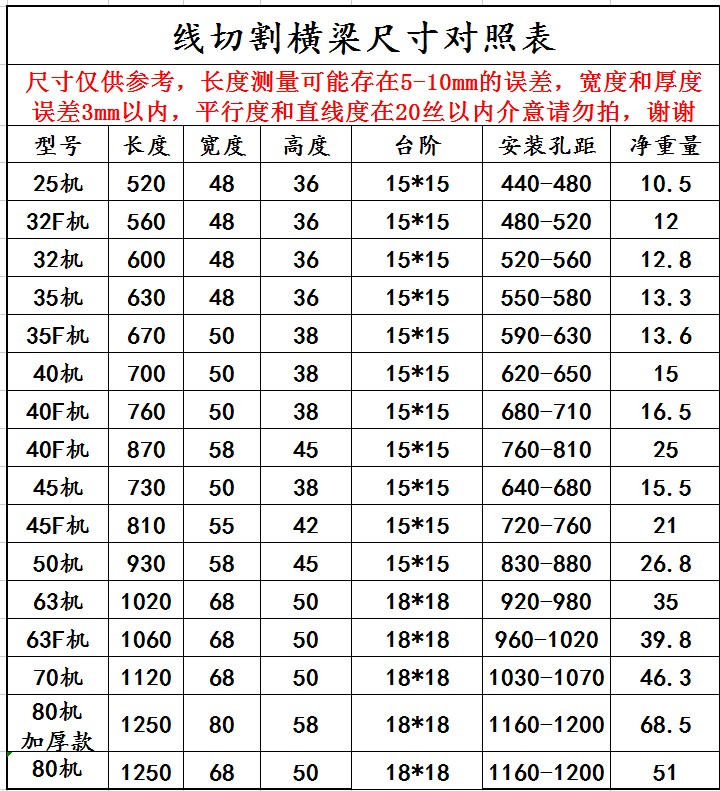 25 machines Total length 520mm a pair of 32F machines Total length 560mm a pair of 32 machines Total length 600mm a pair of 35 machines Total length 630mm a pair of 35F machines Total length 670mm a pair of 40 machines Total length 700mm a pair of 45 machines Total length 730mm a pair of 40F machines Total length 760mm a pair of 40F machines Total length 810mm a pair of 40F machines Total length 870mm a pair of 50 machines Total length 930mm a pair of 63 machines Total length 1020mm a pair of 63F machines Total length 1060mm a pair of 63F machines Total length 1120mm a pair of 80 machines Total length 1250mm a pair of 80 machines Total length 1250mm a pair of thicker models All sizes are solid, support custom-made
