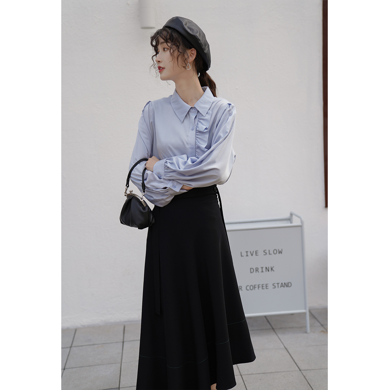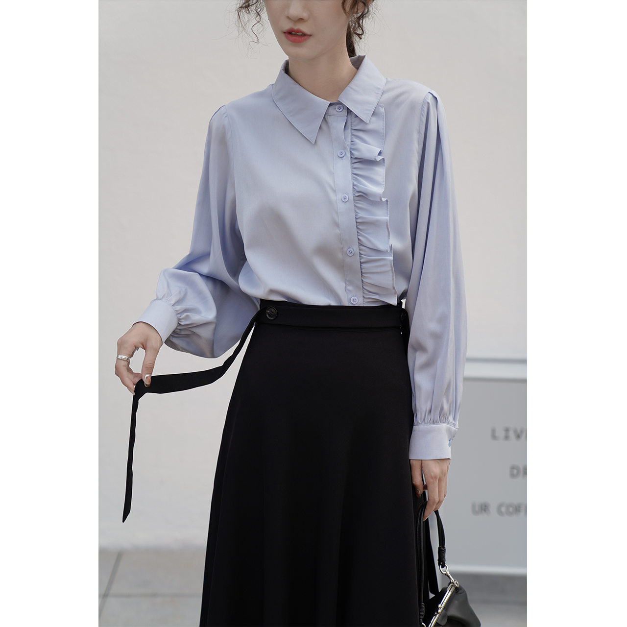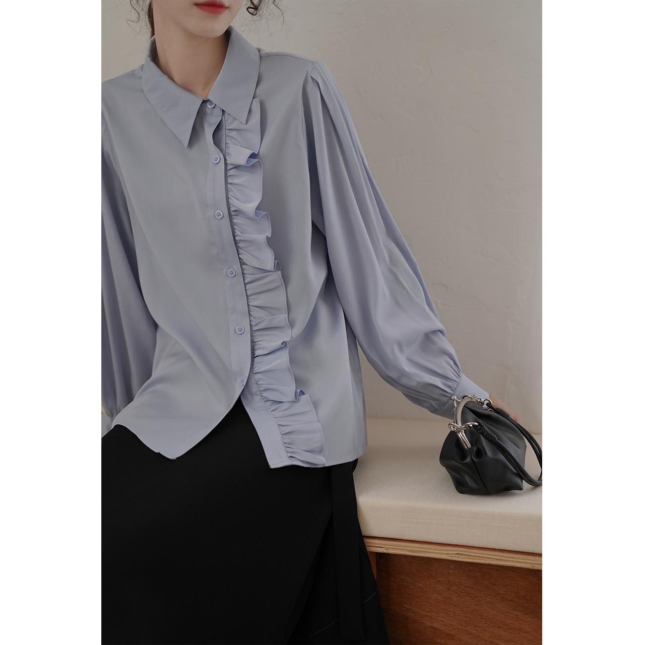 Deer South 2022 Spring Shirts Women Design Sensation Small crowdBlue Agaric Lace Blouse Shirt Spring Autumn Long Sleeve Shirt