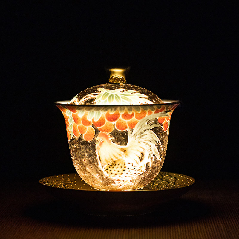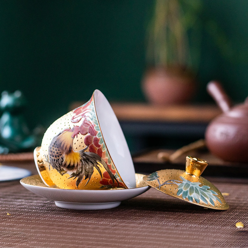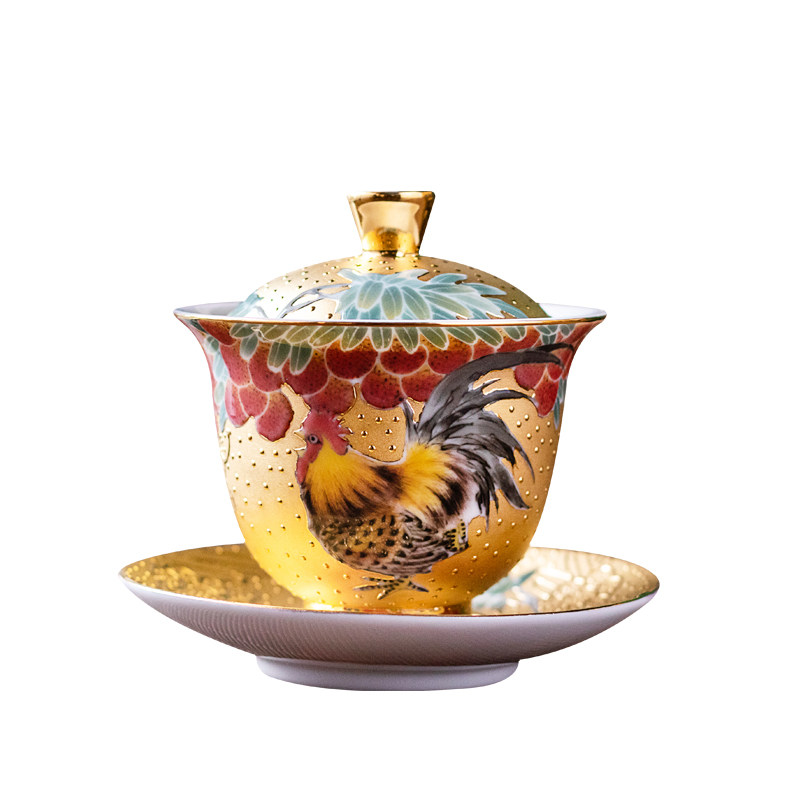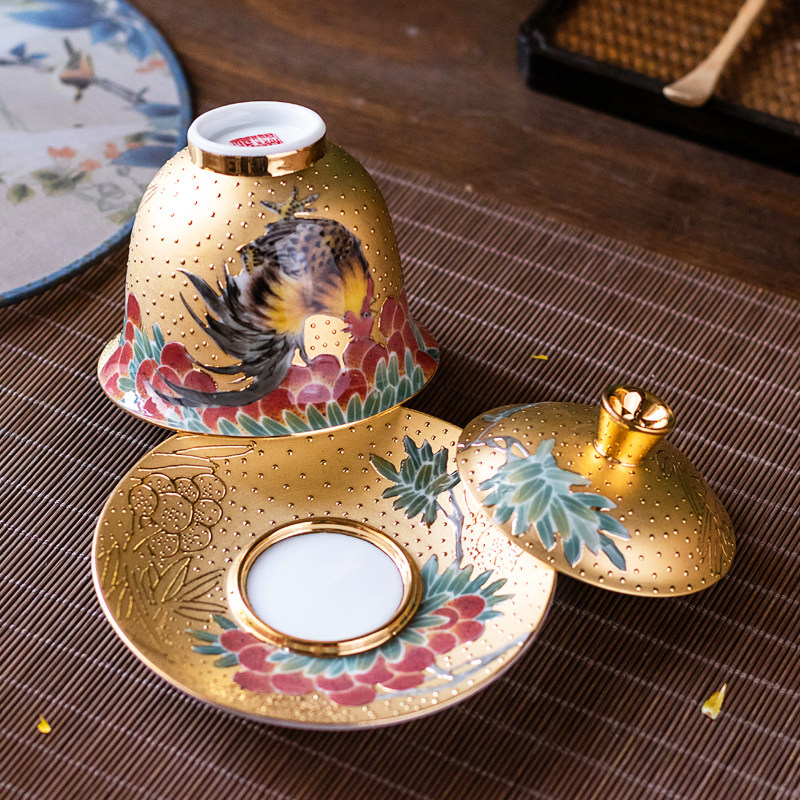 Real Gold Sancai Cover Bowl Chicken Crock Cup Gilt Master Xiao Jianhui Hand-painted Kung Fu Tea Cup Master Cup Household Gifts
