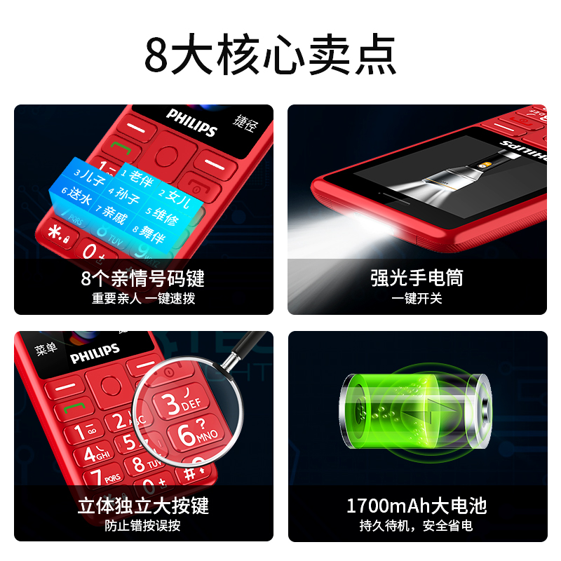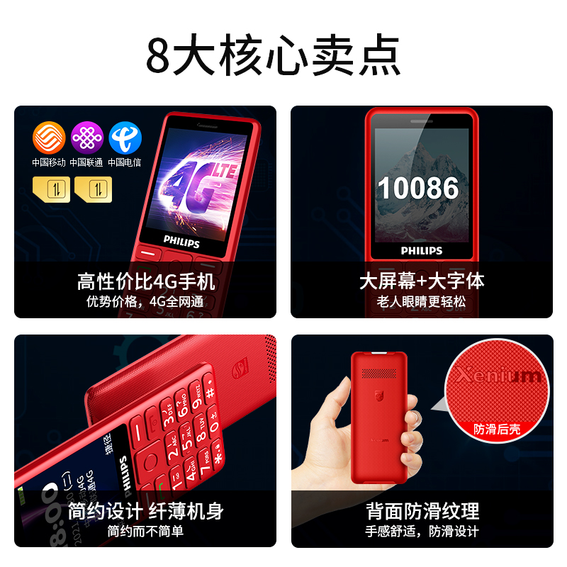 Philips Philips E5064G Elderly Machine Extra Long Standby Straight Board Elderly Mobile Phone Big Screen Big Character Big Voice Telecom Edition Men And Women Primary School Student Function Button Smartphone