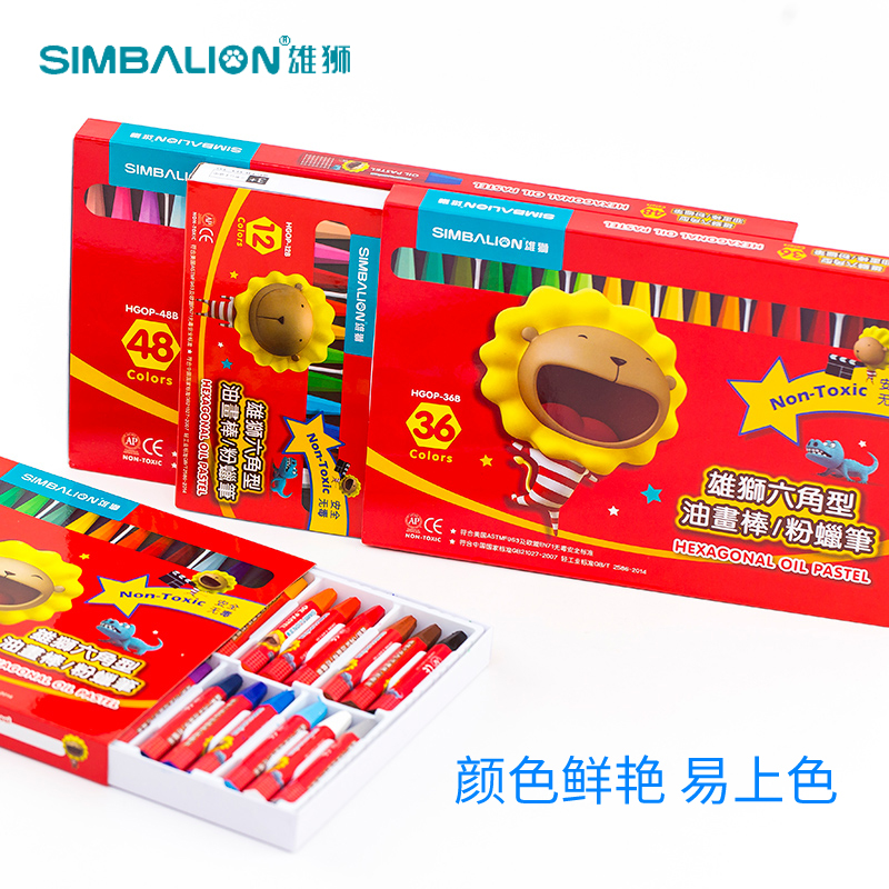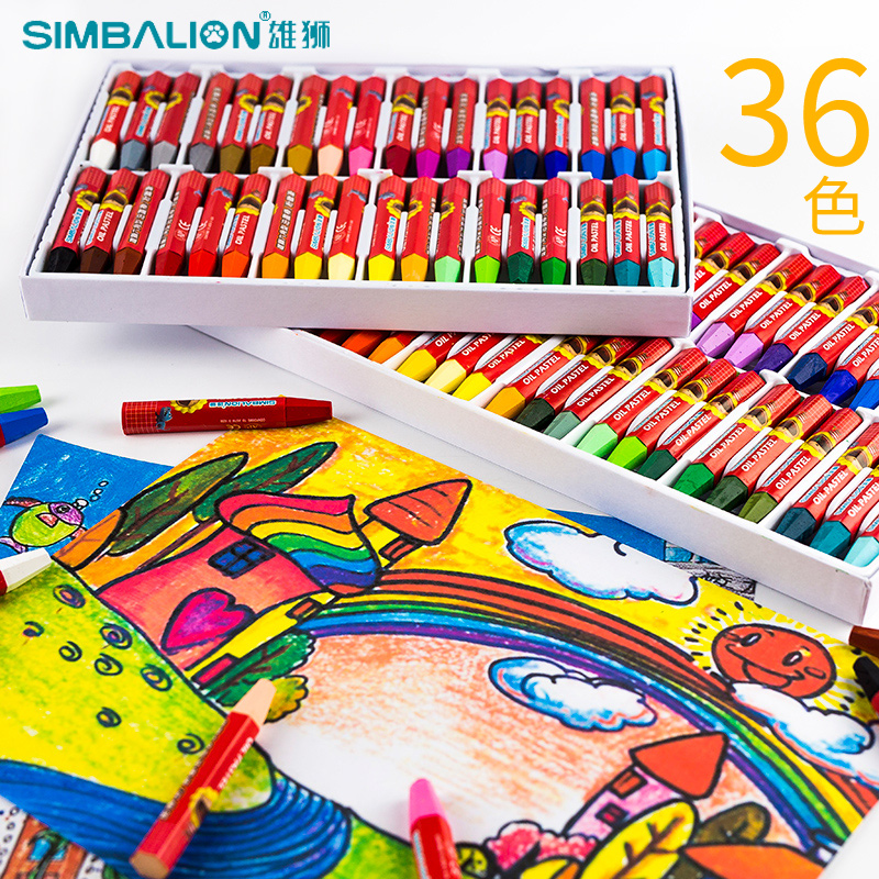 Taiwan Lion Student 48 Color Children's Oil Rod 36 Color Hexagonal Art Painting 24 Color Graffiti Brush Primary Student Painting Water Wash Student Safe 48 Color Oil Rod Set