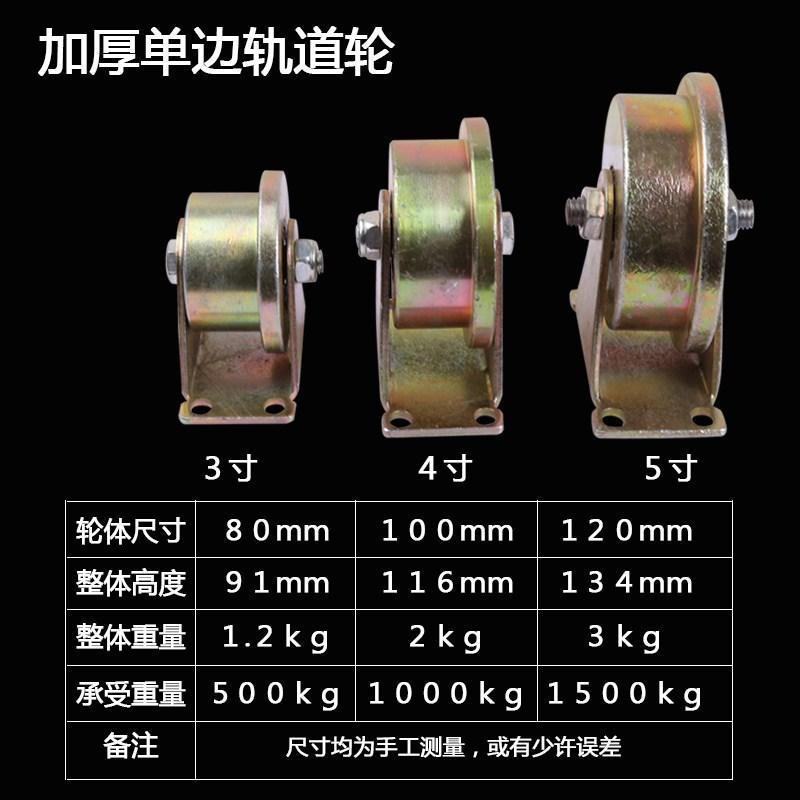 5 inch thickened single side rail wheel (diameter 120mm) 4 inch thickened single side rail wheel (diameter 100mm) 3 inch single side thickened rail wheel (diameter 80mm) 5 inch U shape (diameter)