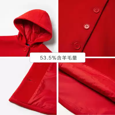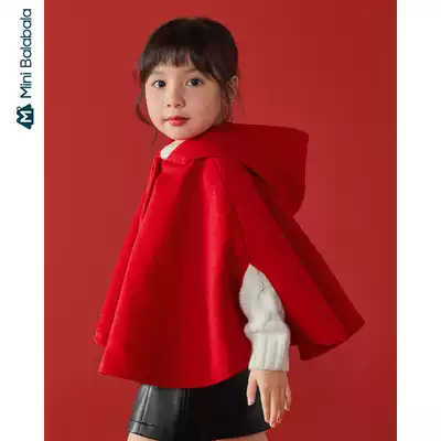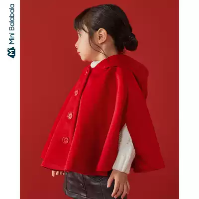Clearance] Mini Balabala children's woolen coat girl year hooded woolen coat winter children's clothing