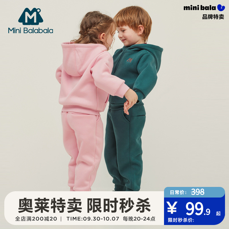 Mini Balabala children's boys and girls baby autumn and winter Western style sweater two-piece sports suit children's clothing