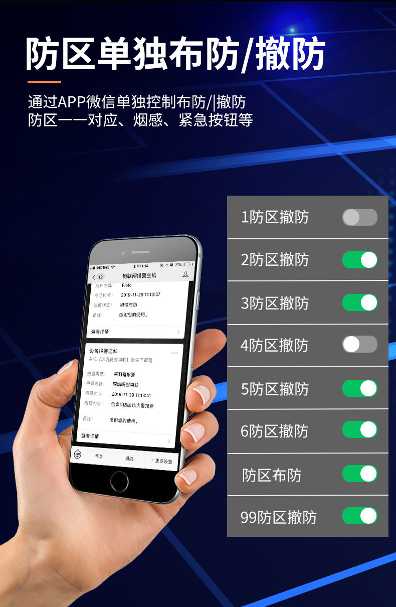 Internet of things one-key alarm host anti-theft alarm host 8-way wired industry siren app siren