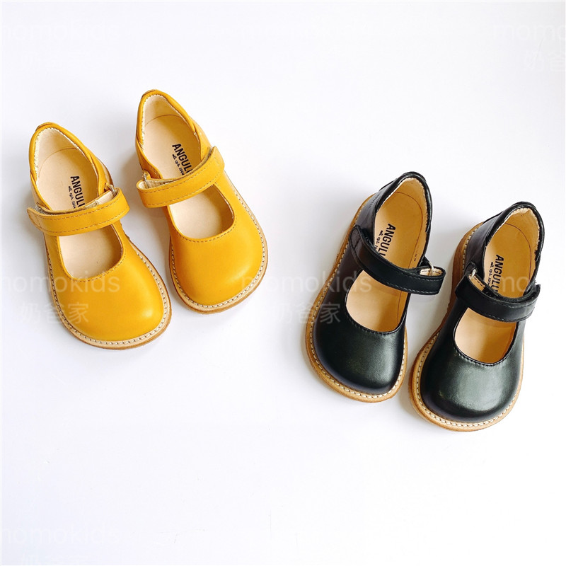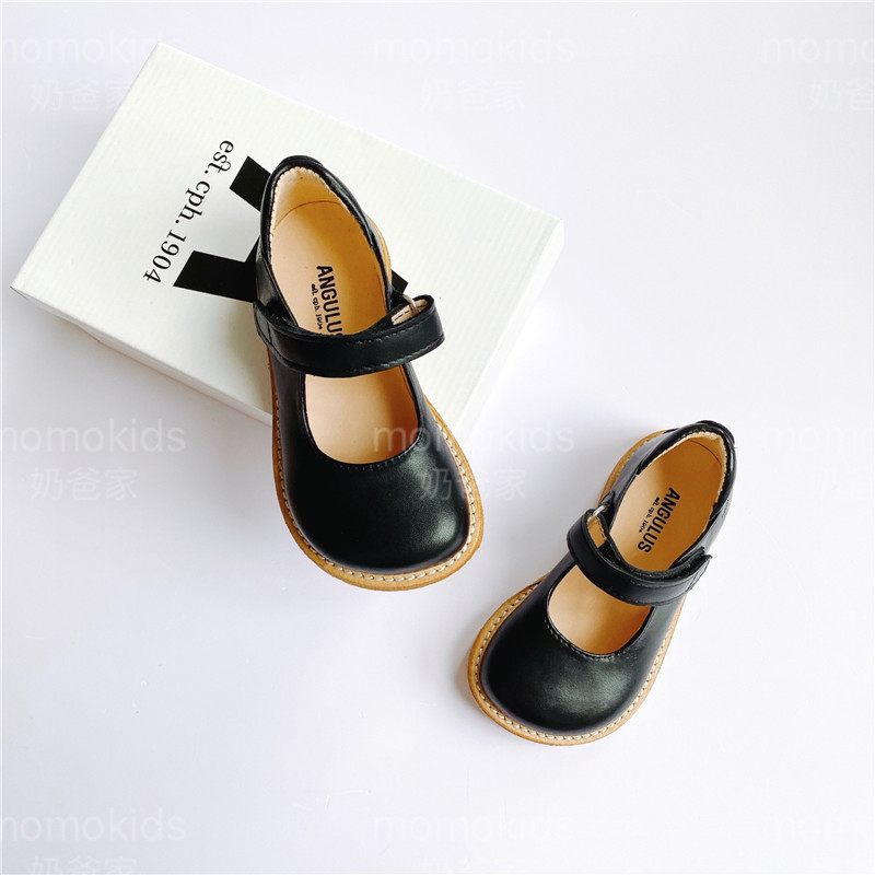 Milk dads Home Angulus children's baby handmade retro magic appliqued with wide head leather shoes 3289 single shoes 66