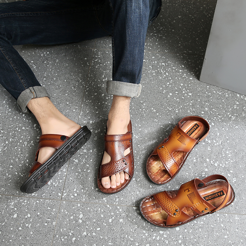 2022 new sandals men's summer beach shoes men's soft bottom outer wear sports large size dual-use beach sandals shoes men