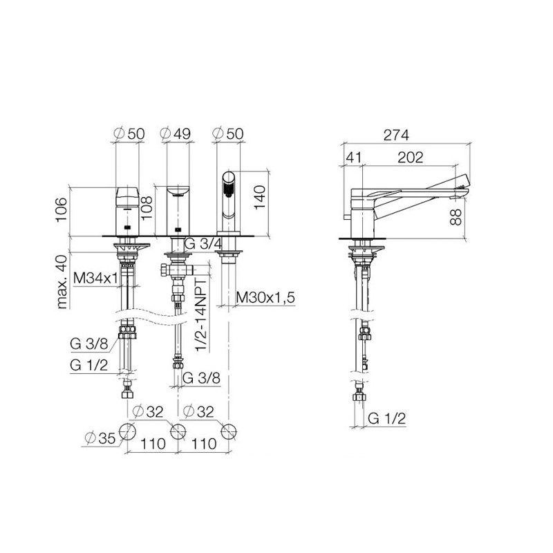German original imported Dornbracht contemporary bathtub faucet 27412845-00 three-hole silver shower