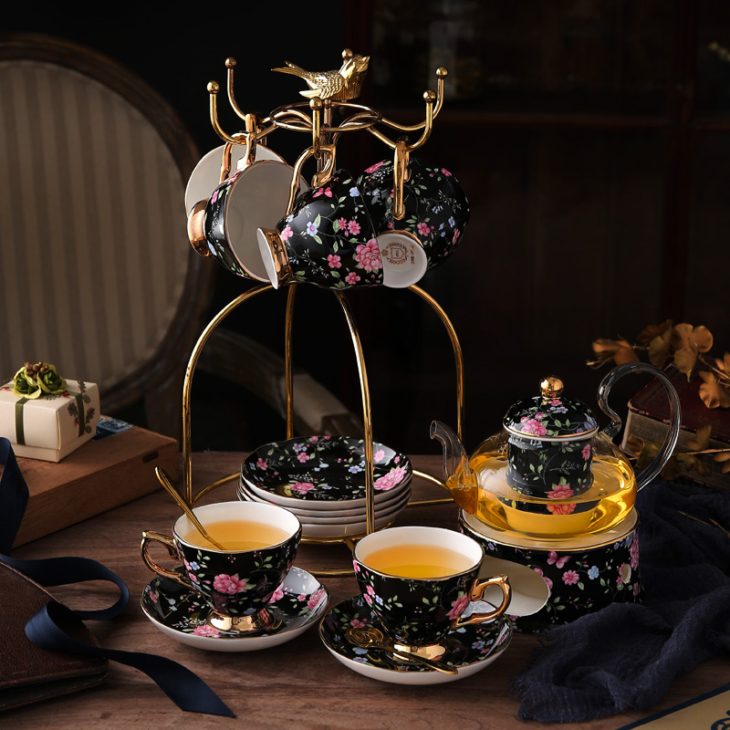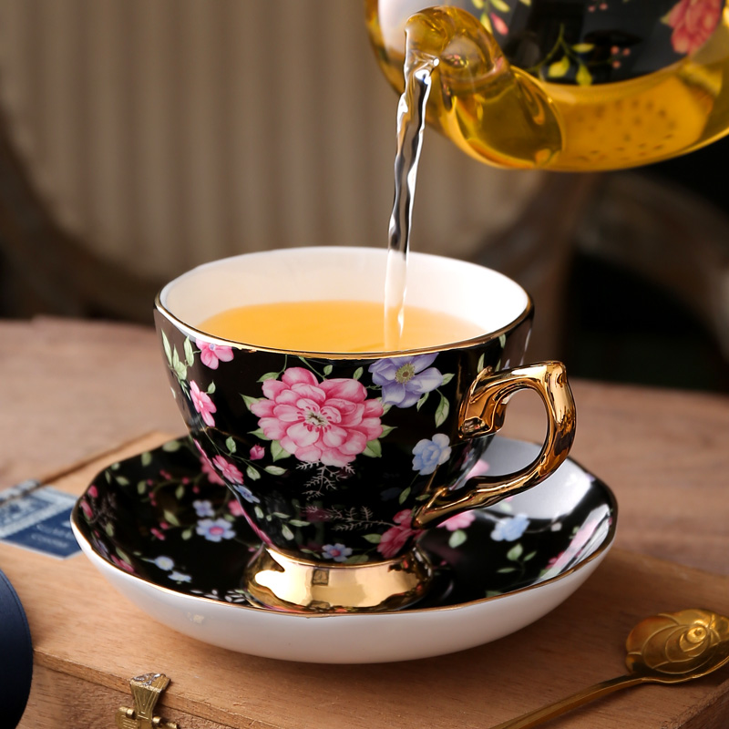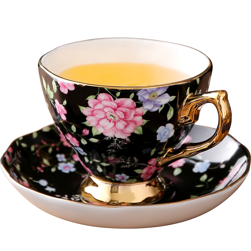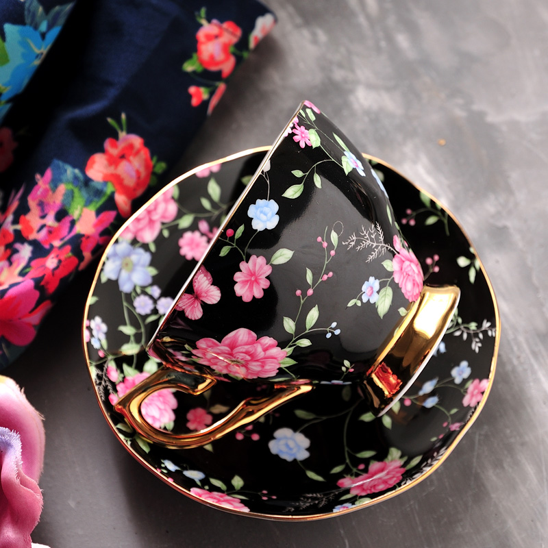 British bone China coffee cup European small luxury simple coffee cup and saucer set Household high-end afternoon tea flower tea cup