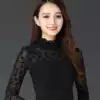 Autumn national standard modern social dance Fungus collar mesh Latin dance show lanky long sleeve women's top square dance suit