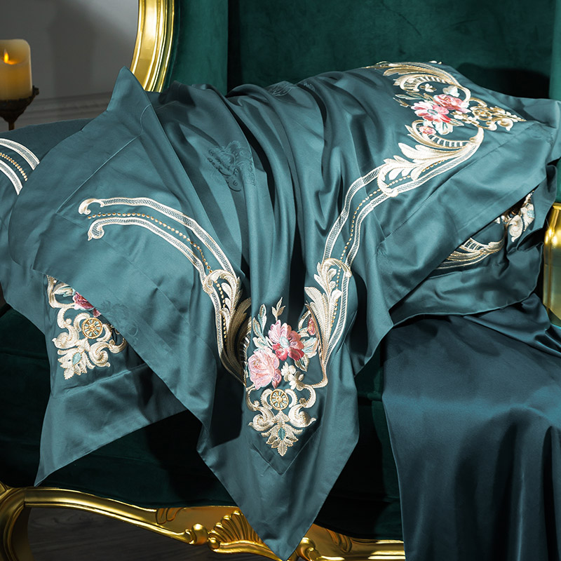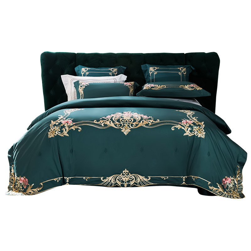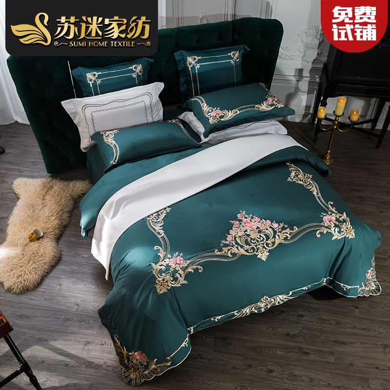 High-end home New Chinese four pieces of 4 sets 100 long suede cotton deep blue-like board room Soft bed linen bed bedding GLY