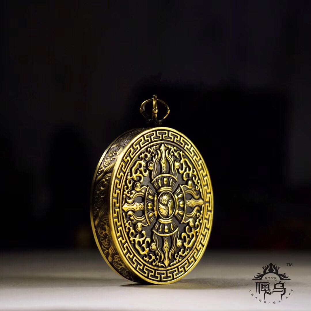 Prajna Thangka Antique Old Pure Copper Micro Tangga Black Box Relief Craft Small Zhaka Shell