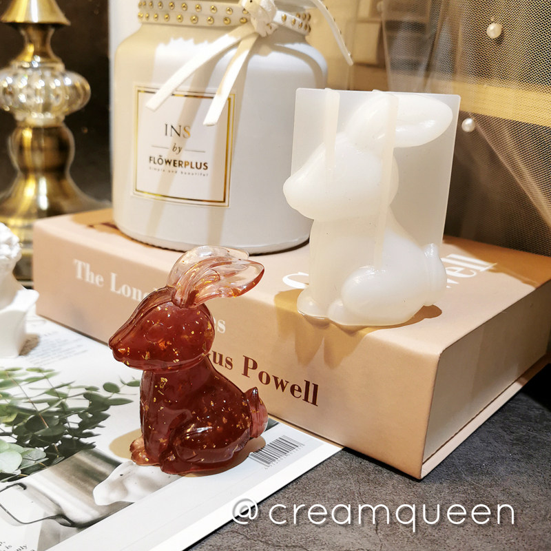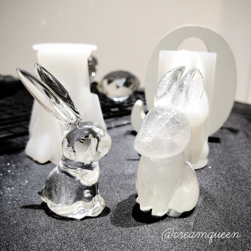 Solid Stitched Rabbit Big Ear Rabbit Long Ear Rabbit Mirror Silicone Mold Die DIY Drop Glue Pendulum Table Bracket Cream Queen