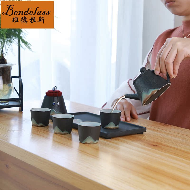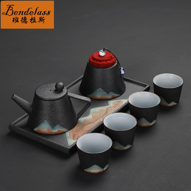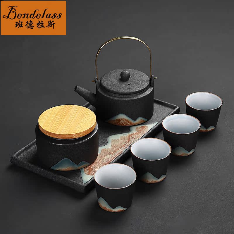 Banderras Black Pottery Tea Set Cup Set Tea Set Tea Set Sun Style Tiliang Pot Kung Fu Tea Furniture for Home