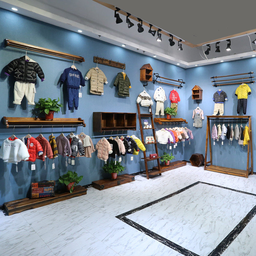 Clothing Store Hanger Racks for children Clothing Women's Clothing Solid Wood Shelves Middle Island Shelf Composition Display Upper Wall Hanging Positive Side Hang