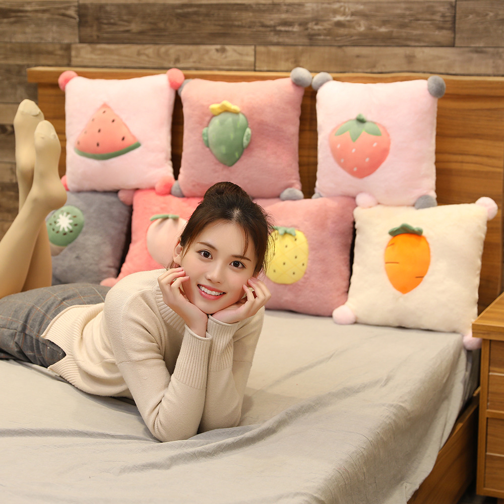 Strawberry Pineapple Pillow Office Sofa Cushion Cute Girl Heart Rabbit Velvet Bed Cushion Small Pillow Removable Washable