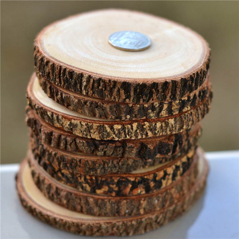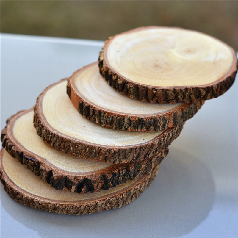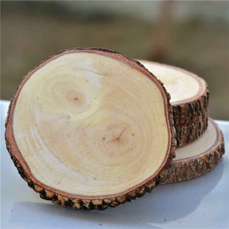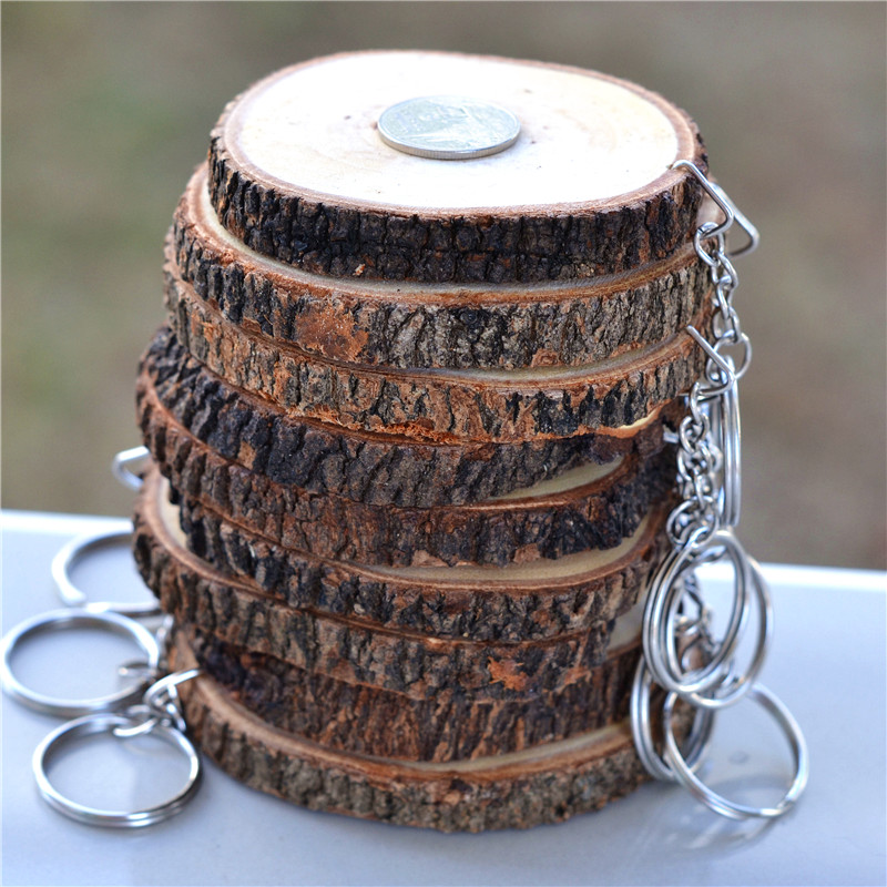 Handmade solid wood tree wheel small veneer key ring DIY material hand painted round cut wood block decorative background wall