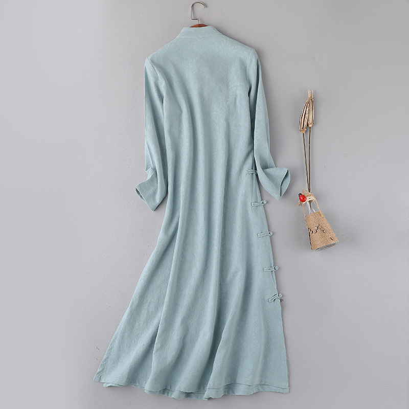 Republic Of Republic Wind Cotton Hemp Improved Qipao Style Tea Suit Women's Gowns College Art Retro Disc Button Linen Zen