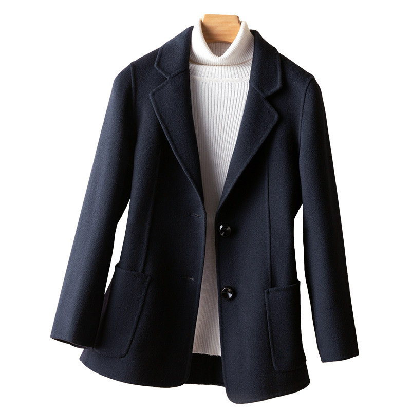Double face cashmere big coat female short 2021 high-end fur coat black professional autumn and winter western suit