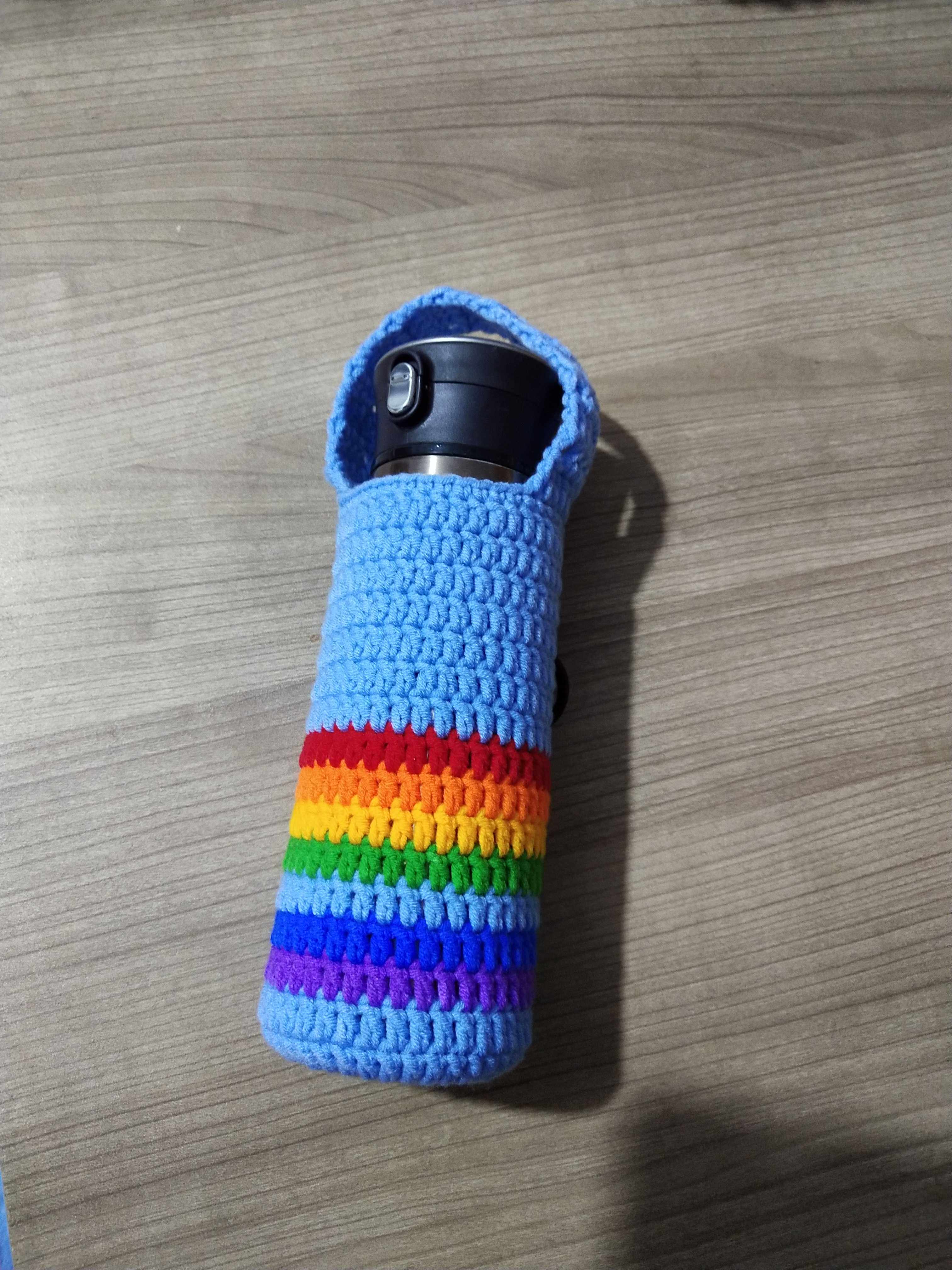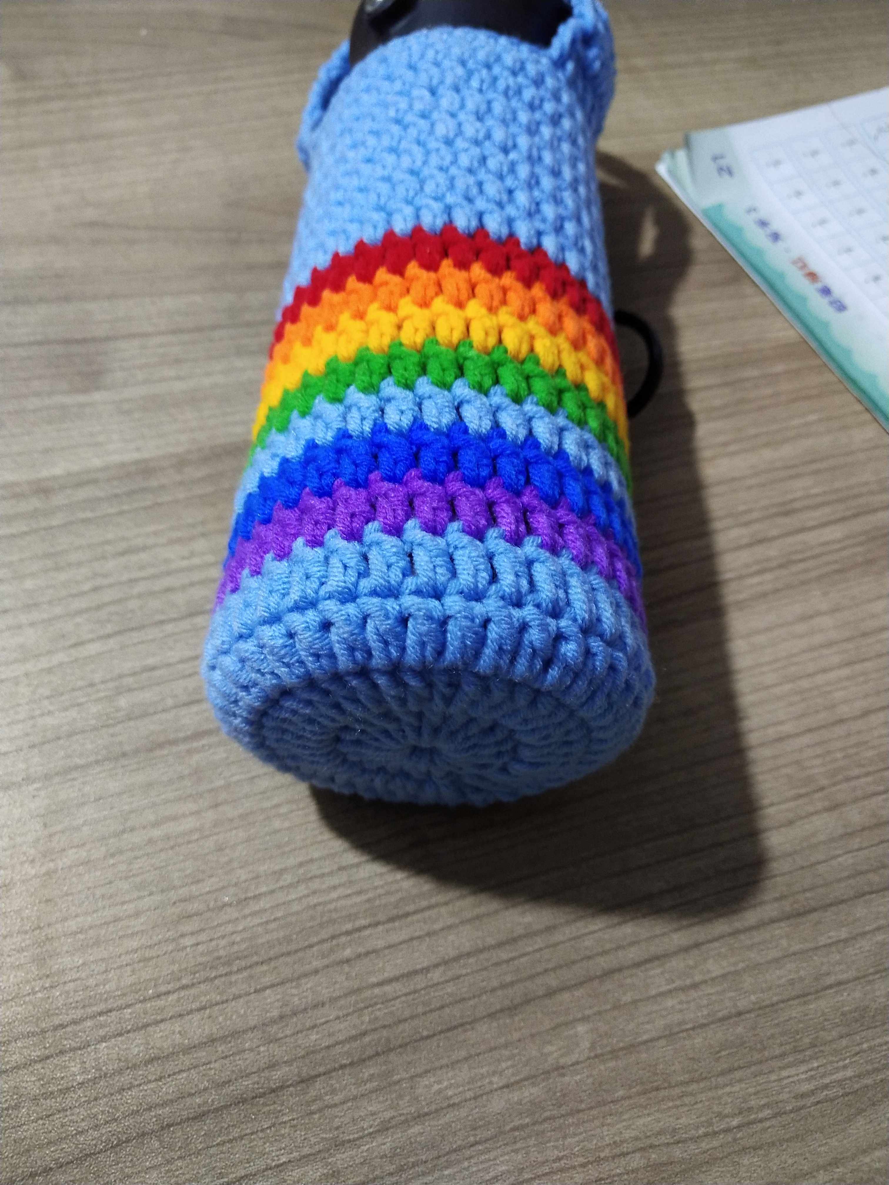 Handmade crochet milk cotton thread rainbow strip creative cup set cooking magician thermos cup Cup bag support customized