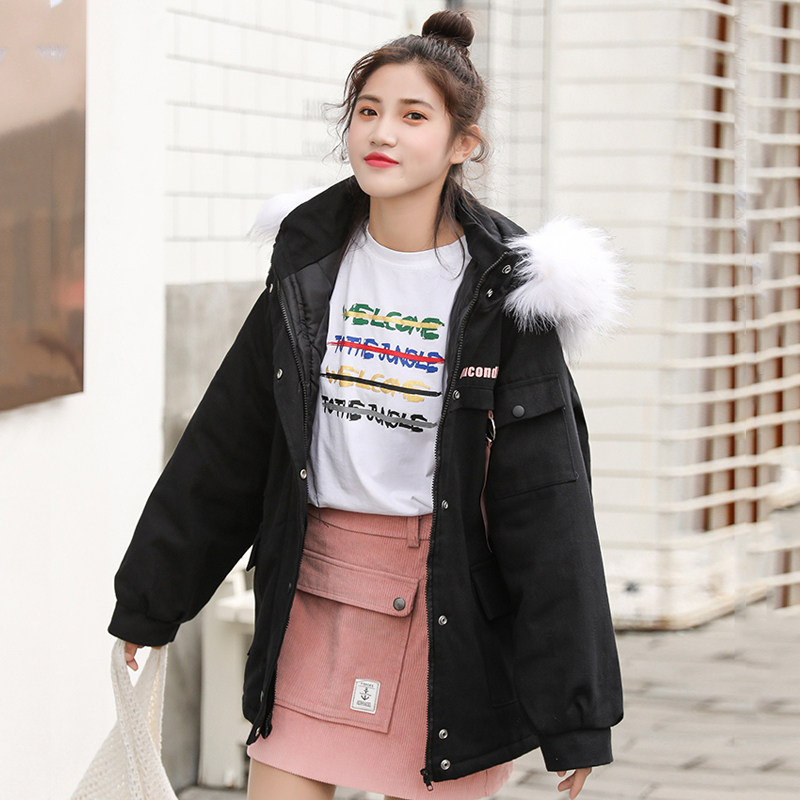Fur collar pocket Stitching button zipper