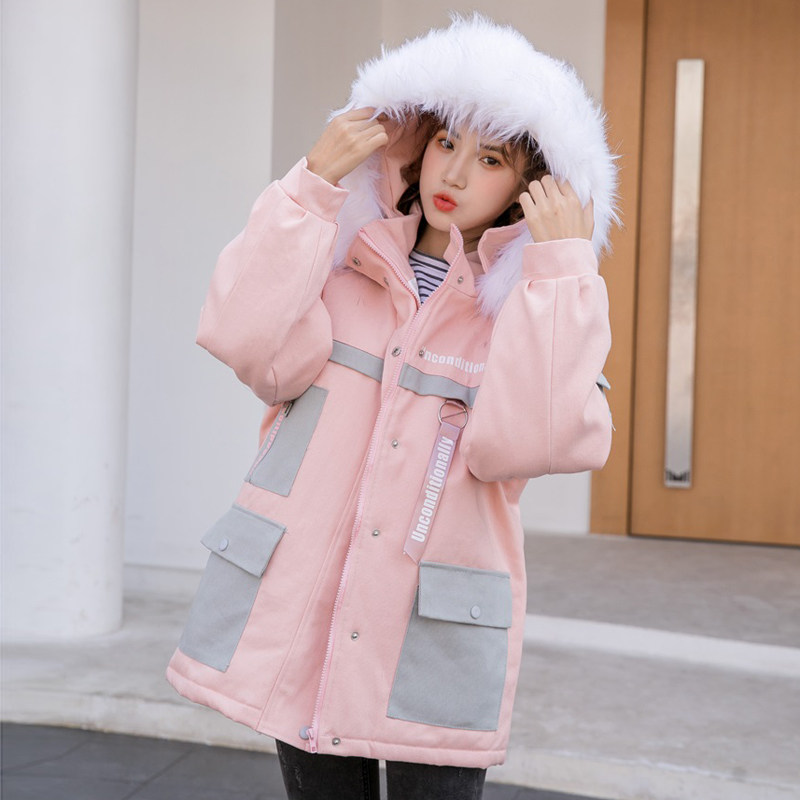 Frock cotton coat girl winter dress 2021 new junior high school students Korean version of the long version of the quilted jacket down cotton coat