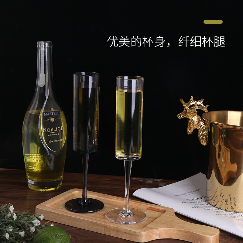 Champagne Cup Acrylic Creative High Foot PC Cup Red Wine Glass Black Cocktail Glass Transparent Anti-Fall Bar Cup Commercial
