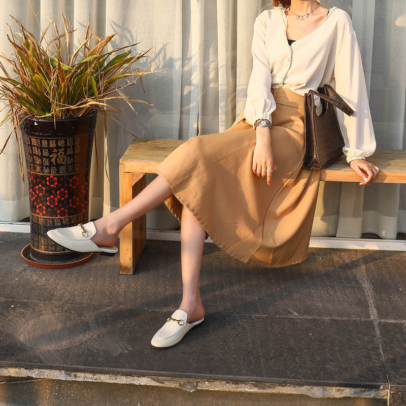 Half slippers female outwear Mueller shoes 2022 spring and summer new horse title buttresses Baotou flat bottom sandals Shoe shoes sloth people net red shoes