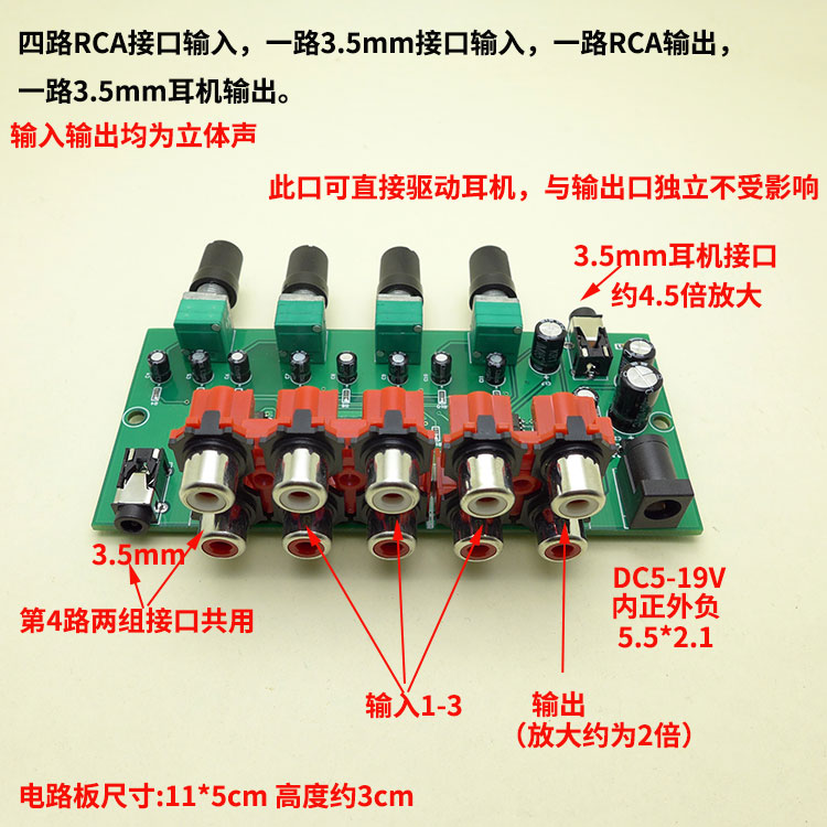 RCA Lotus interface multi-channel audio source input switch-free hybrid mixer four-in-one four-in two-out