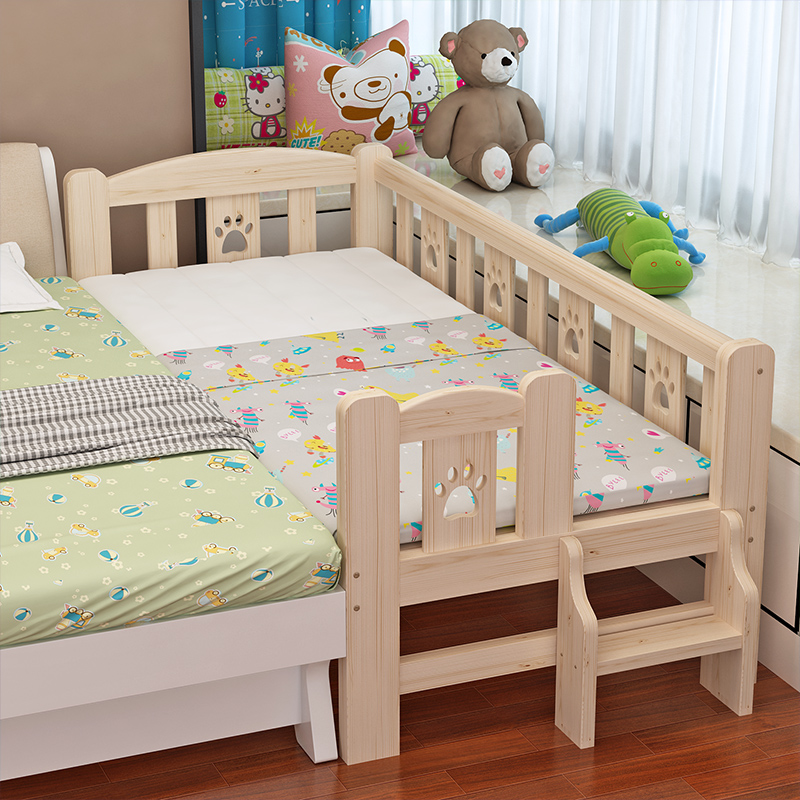 Crib Splicing Bed Solid Wood Children Bed With Guardrails Bedside Bed Widening Newborn With Guardrails Small Bed Baby Cot