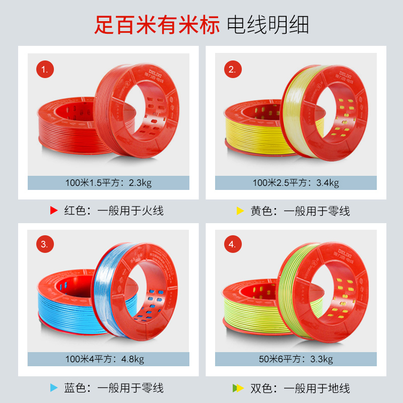 Dresi wire BV2 5 square home copper wire national standard 1 5mm cable 10 square foot rice hard line pure copper core