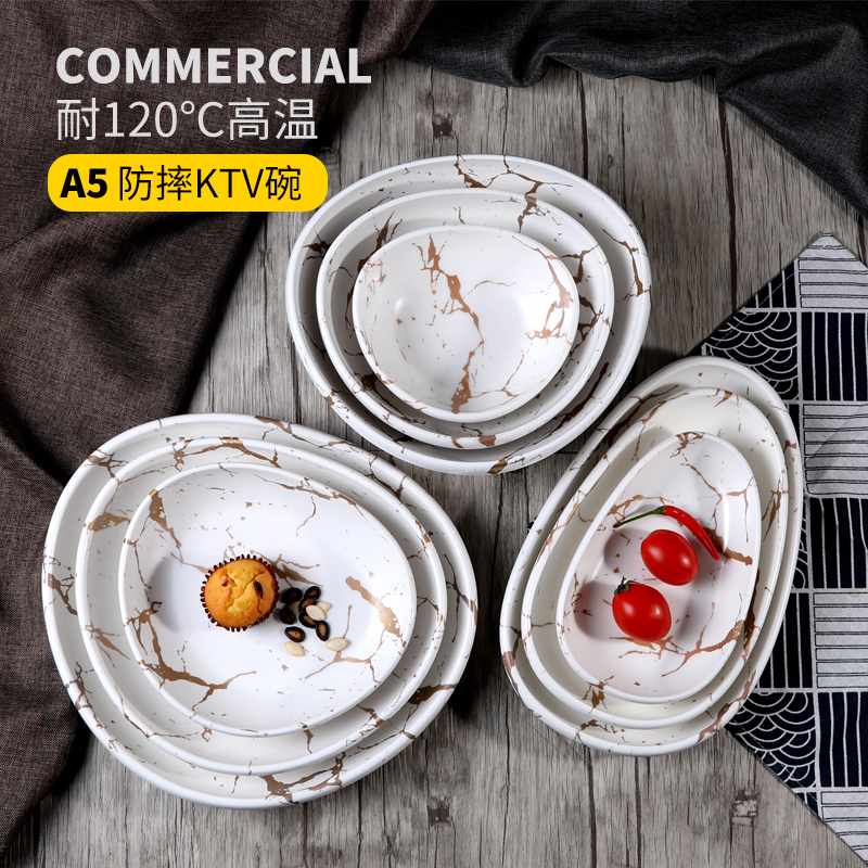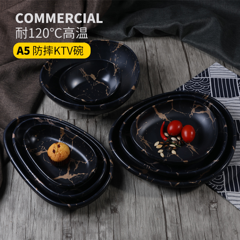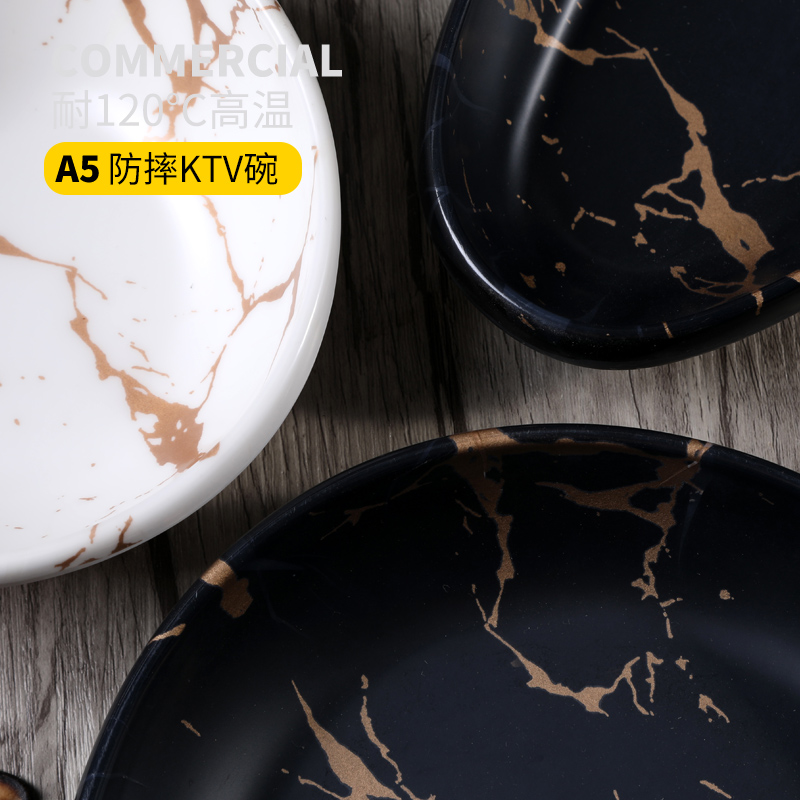 A5 black and white gold imitation porcelain melamine cutlery Western dining tray personality Japanese style creative deep disc small dish small bowl West restaurant plate
