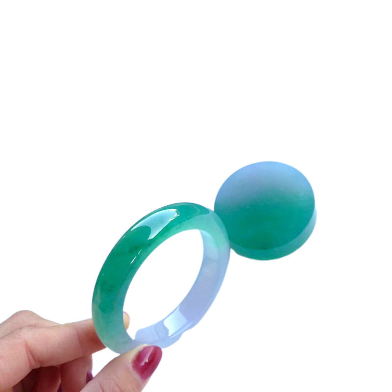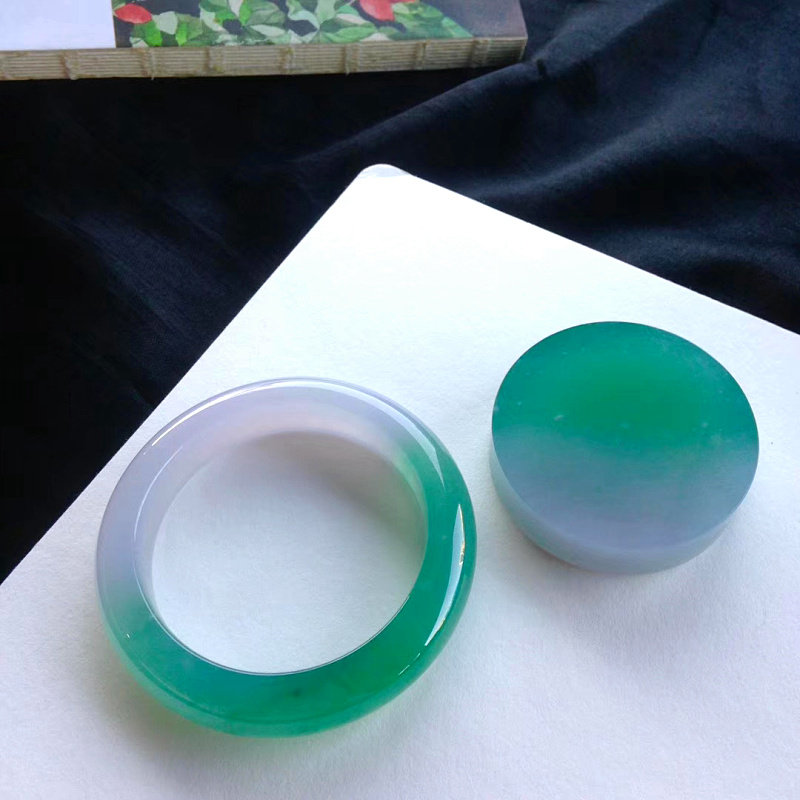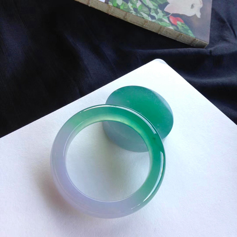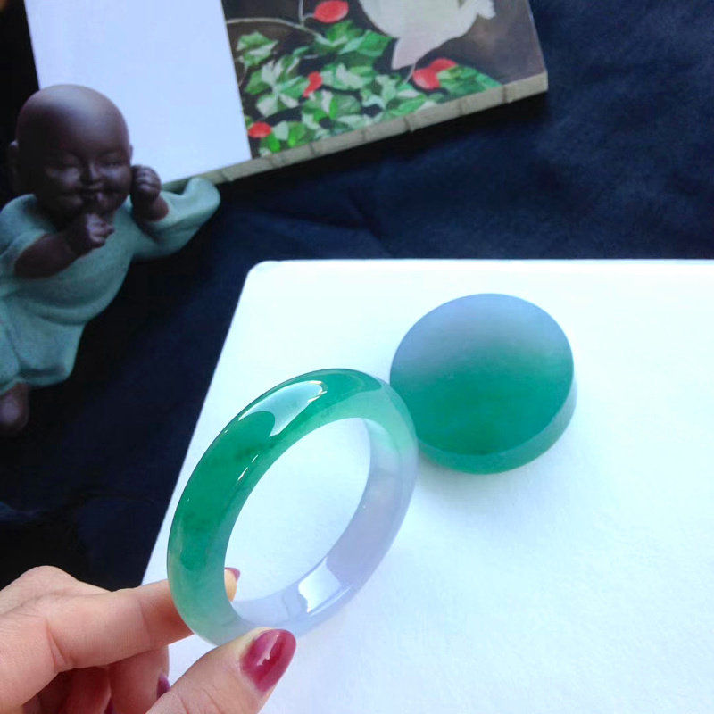 Natural violet Burmese A-cargo jade bracelet ice species positive ring floating green flower jade bracelet round strip wide version with certificate