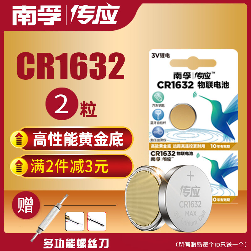 Nanfu button Chuan Ying CR1632 lithium battery 3V multi-brand car key remote control S6L3 Ruizina Zhijie F3 Baojun car tire pressure monitoring external sensor electronic scale motherboard